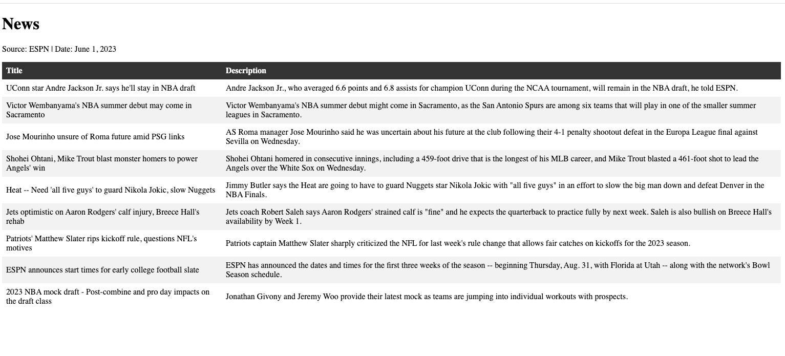 I've got this set up as a cronjob. It runs every day, delivering me just the right dosage of sports news. Keeps me shipshape and informed!